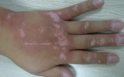 发现手上长白色的小点点,一定要尽早就诊。大家都知道白癜风影响容貌,如果不能及时治疗白癜风,在影响容貌的同时,还会对患者的身体健康造成很大伤害。由于免疫功能受到影响,白癜风会让患者更容易患上免疫性疾病,如:甲状腺疾病、斑秃、糖尿病、肝病等。>>>> 手上有一片白 皮肤白块图片