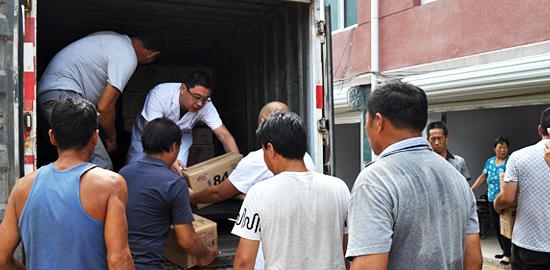8月5日,石家庄远大白癜风医院抗洪救灾捐赠小组邢台市西黄村灾民安置点,将饱含着深情厚谊的救灾物资和凝聚着大爱精神的捐款资金送到受灾群众手中。