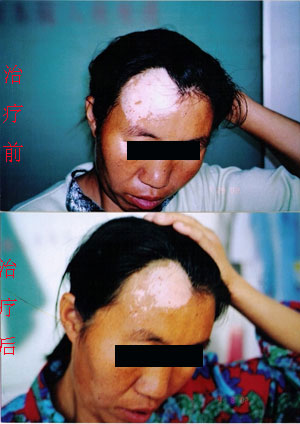 同时辅以特色祛白消斑系列药物,加以调节和补充。 经过一个月的时间,李女士额头的白斑颜色由白色转深,边缘出现黑素带,连续加服两个月后,白斑区已经恢复60%。目前李女士仍在服用我院开的特色中药。