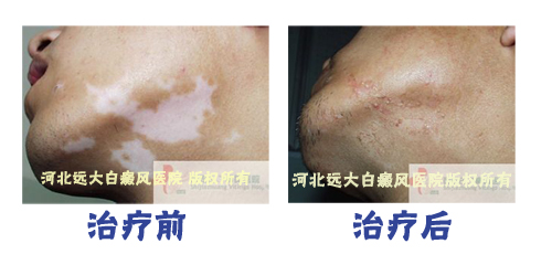 患者小张,今年25岁,保定人。本想着今年五一劳动节办喜事,可谁知刚到春天,在左侧下颌部不明原因出现三片大小不等的皮肤白斑,面积逐渐扩大,经当地医院诊断为:白癜风。幸福一下断了线。家里人很着争,到处求问药,均未能控制白斑,面积继续扩大。经身边病友介绍到石家庄远大白癜风医院。