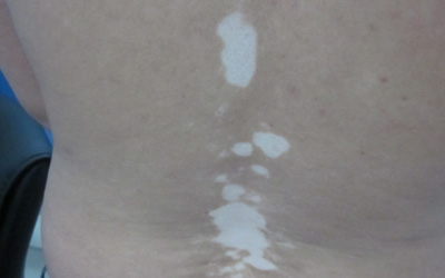 孩子腰上有一片皮肤颜色比周围颜色浅发白小心是得了白癜风,这种疾病是由于黑色素脱失导致的,会使皮肤长有深浅不一的白斑,通过做科学有效检测,可以对孩子的白斑进行更准确诊断,白癜风疾病治疗要趁早,看下方可了解更详细的介绍。