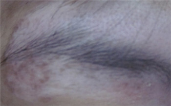 生活中常见的白癜风、白色糠疹、贫血痣等病,都表现为白斑。其中白癜风可出现在眉毛处,也容易出现扩散,所以白斑在眉毛处有轻微变大是白癜风的概率相对更大。相对而言,白癜风的危害更大,治疗难度也比较高,大家务必重视,尽早诊治。>>>> 眉毛部位白癜风治好的案例图