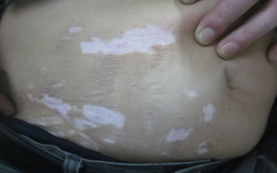 患者皮肤上的白斑零散现在连成一片了,一定要谨慎,是白癜风发生扩散了。这种皮肤疾病基底层黑色素细胞不稳定,当处于进展期时几很容易发生扩散。肉眼可以发现皮肤上的白斑块增多、变大了,白斑的颜色越来越白,邻近的白斑可能融合在一起,形成一个不规则的白斑块。(白癜风扩散前后的症状对比图片?点我查看)