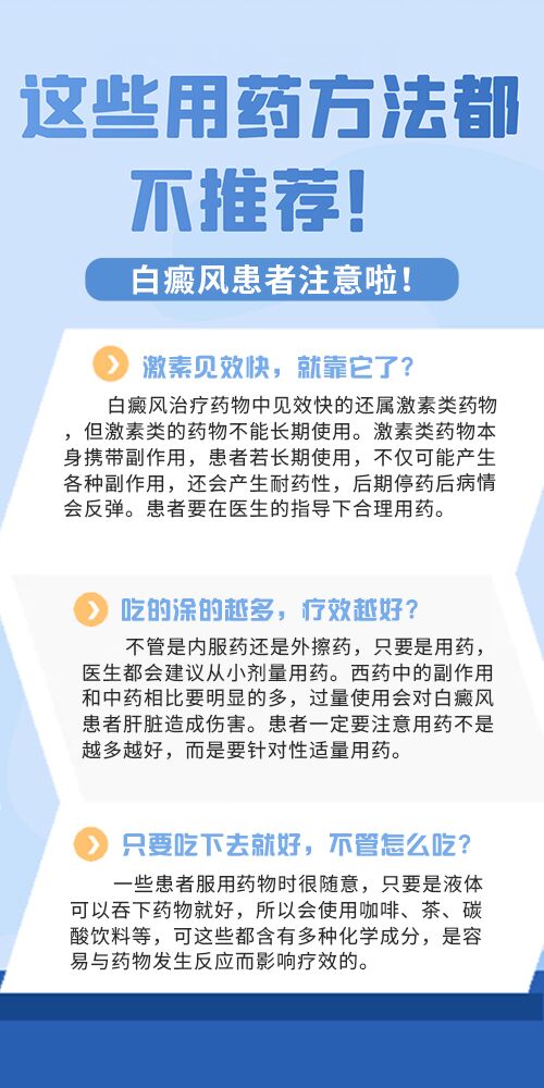 大面积腰部白斑:建议采用311窄谱UVB去进行照射治疗,它很适合大面积的白斑患者,但因它照光面积较大,一些敏感的皮肤部位,如:生殖部位,需要进行一定程度的遮挡,或穿着质地较厚的内裤。