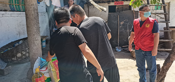 临近中午,太阳晒得志愿者们汗流浃背,但志愿者们的脚步并未停留,接着前往下一家帮扶家庭,在慰问过程中,我们不仅为困难家庭送上米面油等生活物资,还询问了一些日常,了解他们日常所需以及不便的地方,通过跟他们的交谈,更加确定我们此次爱心下乡的意义,让我们的力量拧成一股绳,帮助更多像这样的老人以及贫困家庭,让爱心永远传递下去~