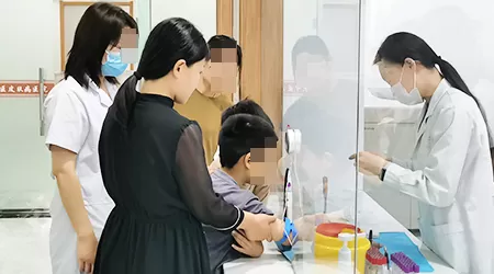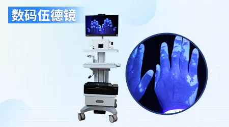 在检查上,采用伍德镜、美国三维皮肤CT断层检测系统检查为主的早期诊断手段,揭示皮损及表皮细胞破坏程度,进行透明检测,科学评估白斑病因类型,同时进行中医体质辨识、过敏原检测、生化、免疫、多项血液、尿液分析等手段,为后续诊疗提供可靠科学依据。
