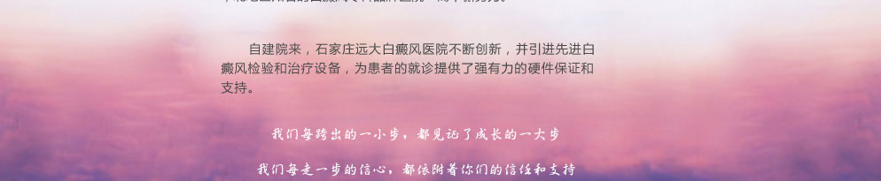 建院以来,石家庄远大白癜风院不断引进先进设备,并不断研究引进特色科学疗法,实现了从传统到微创再到无创治疗白癜风。